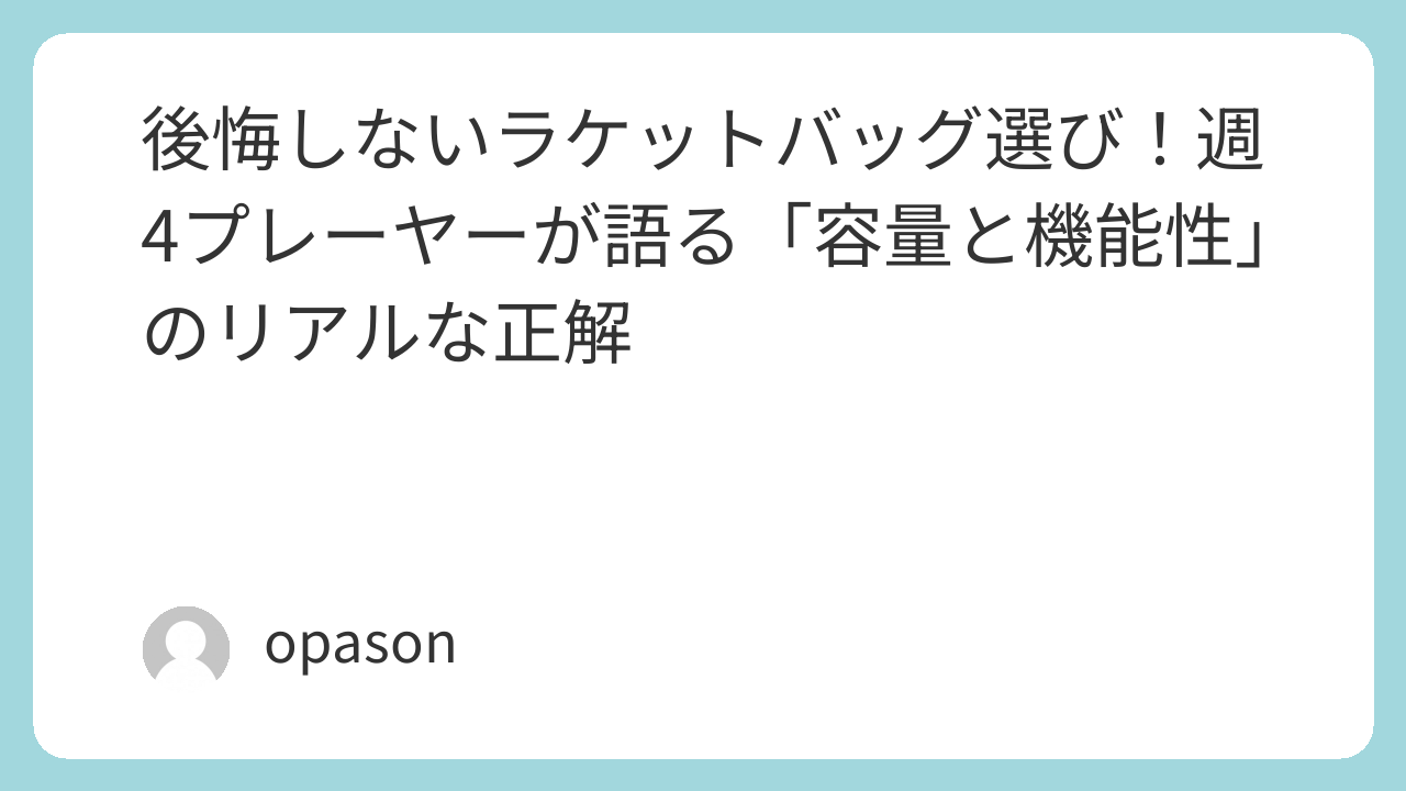 後悔しないラケットバッグ選び!週4プレーヤーが語る「容量と機能性」のリアルな正解