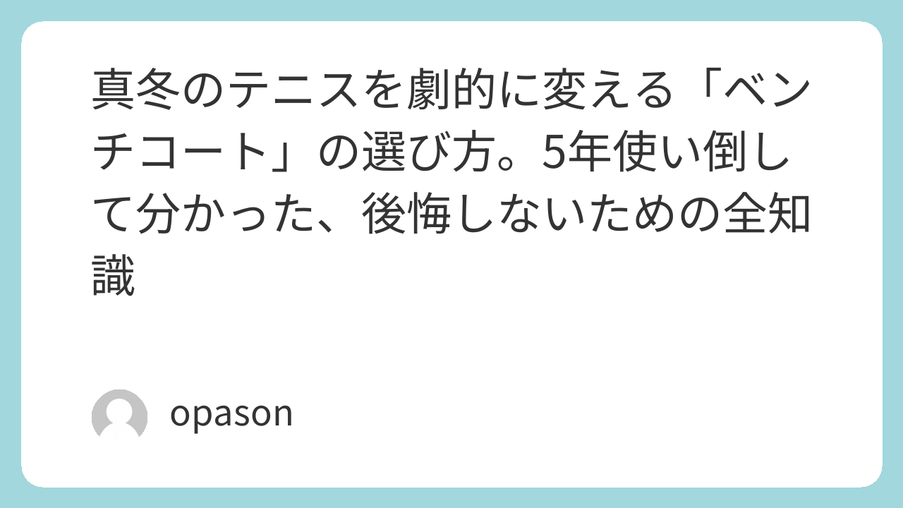 私はこれまで5年間、週末の市民大会やサークルで冬のテニスを続けてきましたが、最強の相棒と言えるベンチコートに出会ってから、冬のテニスライフが180度変わりました。今回は、ネットのカタログ情報だけでは分からない、実体験に基づいた「テニス専用ベンチコート」の選び方と、ガチでおすすめしたい名品をご紹介します。