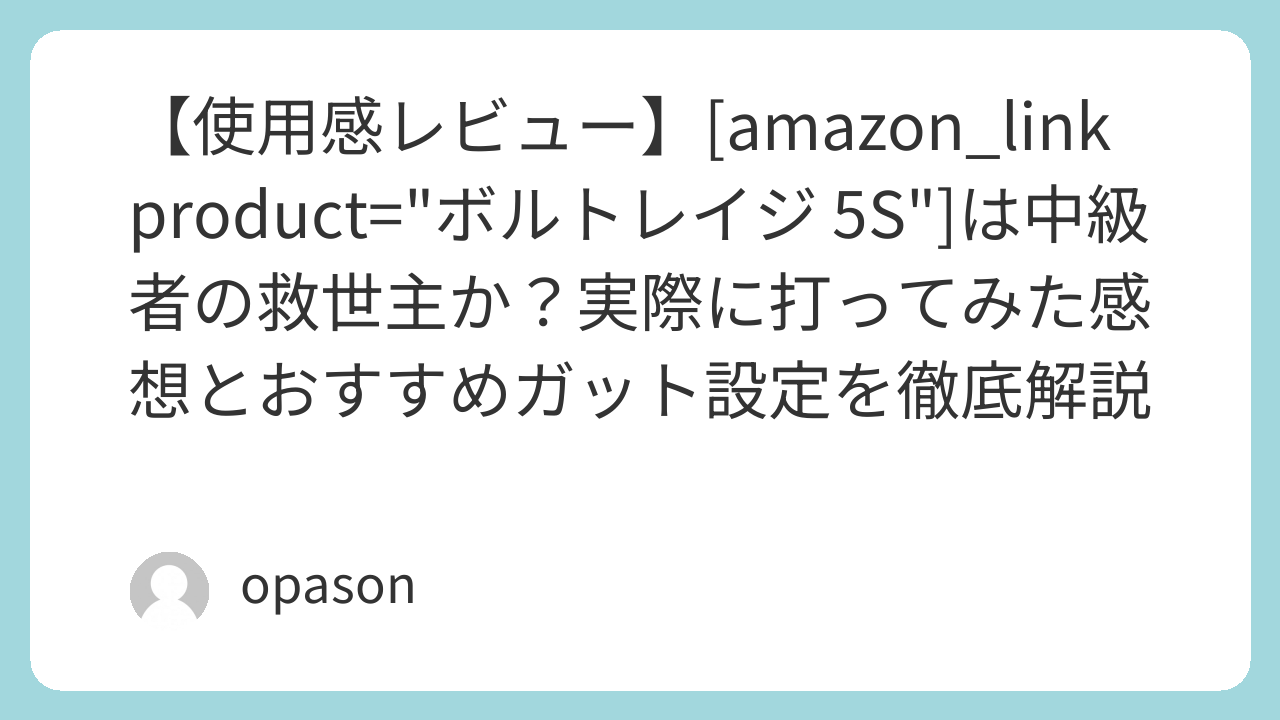 ボルトレイジ 5Sは、決して上級者だけのものではない。むしろ、これからもっと上を目指したい中級者にこそ、この「弾きの魔法」を体感してほしい。