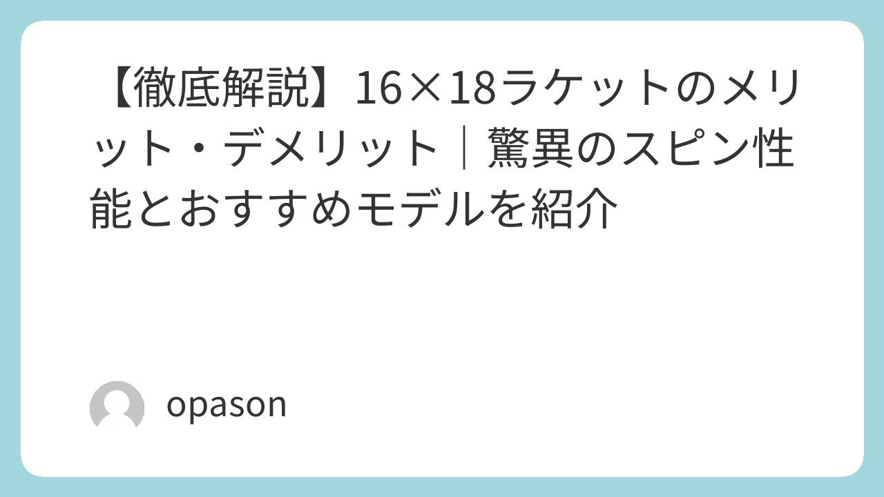 16×18のラケットは、決して「変わり者」のための道具ではありません。それは、パワーを効率よく回転に変換し、プレーヤーに「ボールをコントロールしている」という確信を与えてくれる実戦的な武器です。