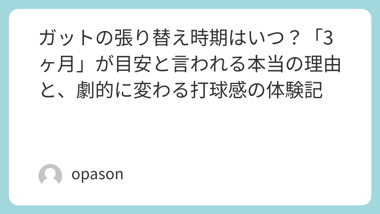 一般的に、ガットの張り替え目安は「3ヶ月」と言われています。たとえ糸が切れていなくても、素材の弾力は時間とともに失われていくからです。