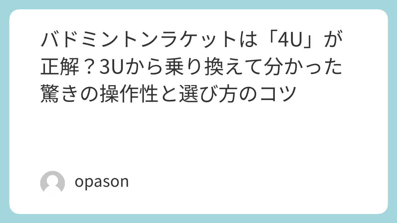 バドミントンラケットは「4U」が正解?3Uから乗り換えて分かった驚きの操作性と選び方のコツ
