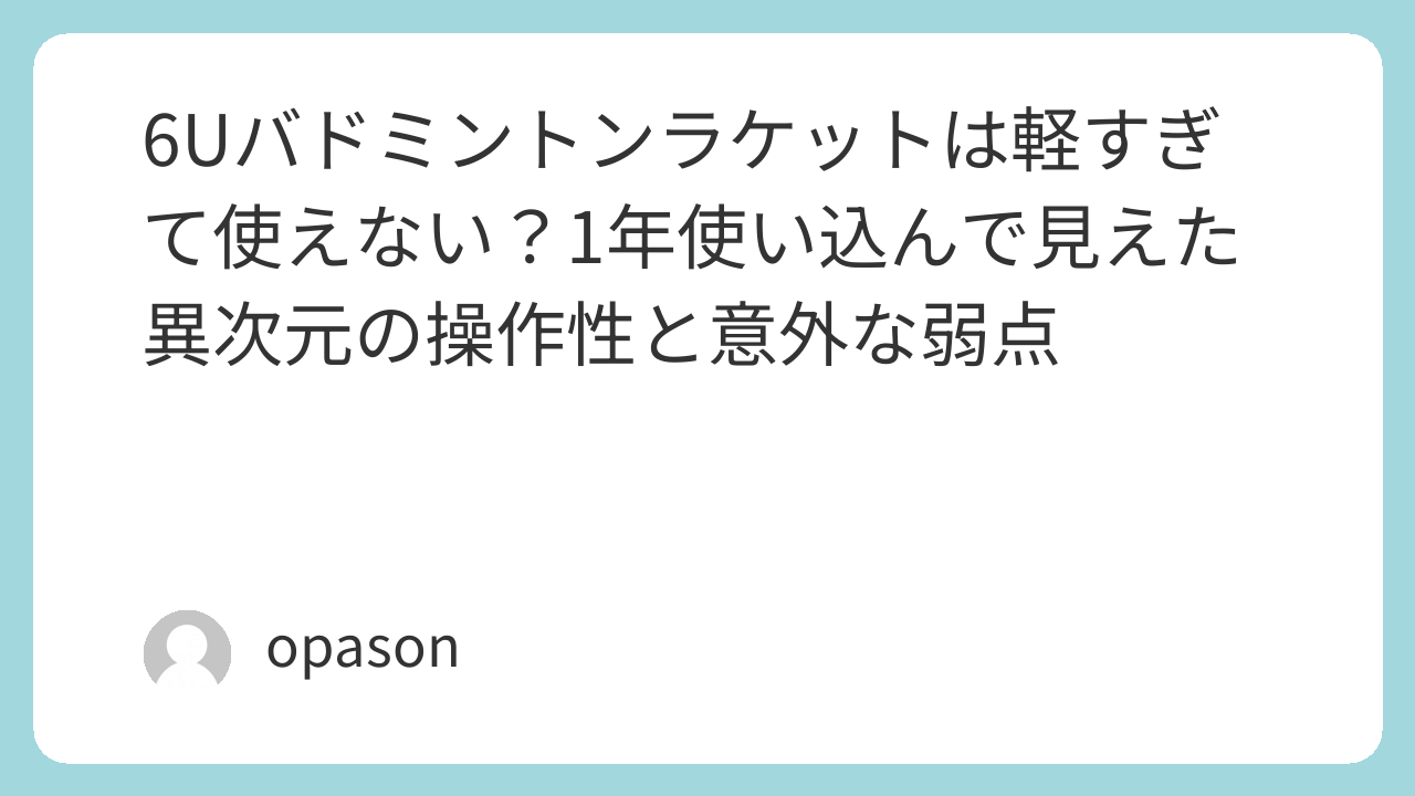 「バドミントンラケットは3Uか4Uが当たり前」という常識を疑ってみませんか?私自身、長年4Uのラケットを愛用してきましたが、ダブルスの前衛で反応が遅れることや、練習後半に肩が重くなることに悩み、思い切って超軽量の「6U」に乗り換えました。