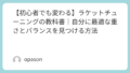 私が初めてショップで2本の持ち込みラケットを計測してもらった際、驚くべきことにバランスポイントが3mmも違っていました。この微細な差が、試合後半の「振り遅れ」や「コントロールの乱れ」として現れていたのです。チューンナップは、こうした個体差を埋め、さらに自分のプレースタイルに合わせてスペックを最適化する「オーダーメイド」の作業です。