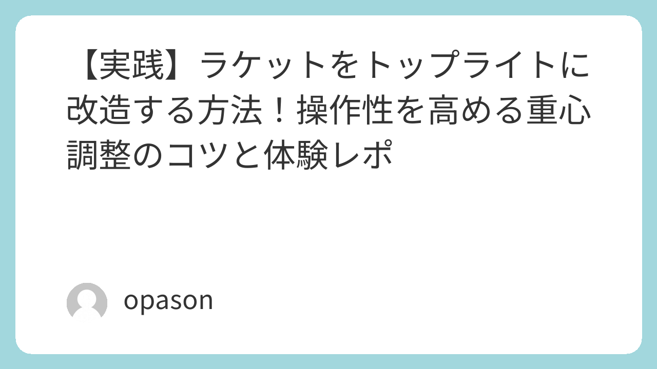 ラケットを買い替えるのは大きな出費ですが、実は「トップライト(手元重心)」への改造は、身近な道具で驚くほど簡単に、そして劇的に変化させることができます。今回は、私が実際に試行錯誤してたどり着いた、失敗しないトップライト化の秘訣をたっぷりの体験談とともにご紹介します。