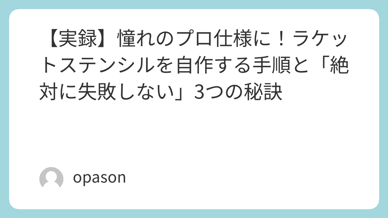 - ステンシルカード(型紙):ヨネックス ステンシルマークやウィルソン ステンシルカードなど、使っているラケットメーカーに合わせるのが王道。自作する場合は、少し厚手のクリアファイルをカッターで切り抜くのがコツです。