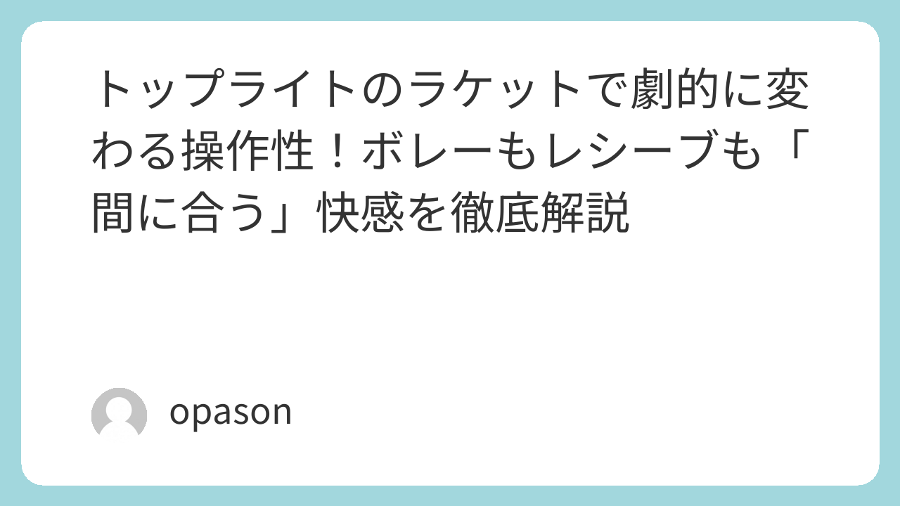 トップライトのラケットで劇的に変わる操作性!ボレーもレシーブも「間に合う」快感を徹底解説
