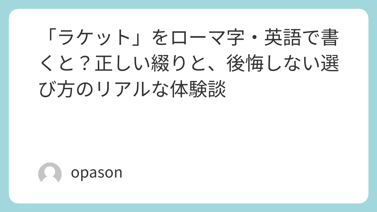 「ラケット」をローマ字・英語で書くと?正しい綴りと、後悔しない選び方のリアルな体験談