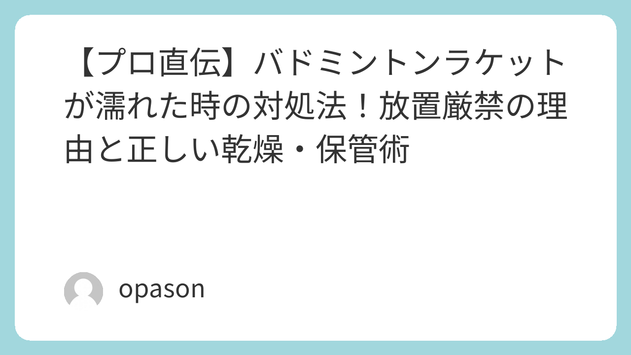バドミントンラケットは、決して安い買い物ではありません。そして、あなたと一緒に戦う唯一無二のパートナーです。濡れてしまった時に「あぁ、面倒だな」と思うか、「しっかりケアしてあげよう」と思うか。その差は、コート上でのパフォーマンスに必ず現れます。