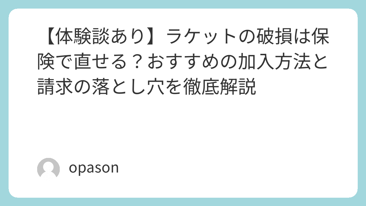 当時は「3万円が飛んでいった……」と数日間寝込みましたが、実は賢いプレーヤーは「保険」でその損害をカバーしています。実体験をベースに、ラケット破損時にあなたを救う保険の仕組みと、具体的な請求のコツをまとめました。