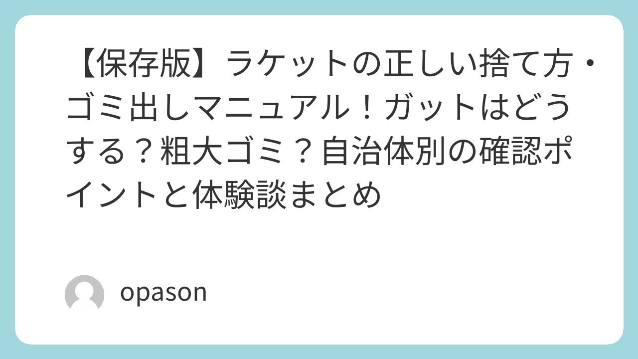 つまり、そのままの状態では粗大ゴミに該当するケースが圧倒的に多いのです。例えば、私が住んでいる地域では「30cm以上は有料の粗大ゴミ」というルールだったため、1本出すのに数百円の処理券が必要でした。「たかがラケット1本で……」と感じるかもしれませんが、ルールを無視して集積所に出すと、近隣トラブルの原因にもなりかねません。