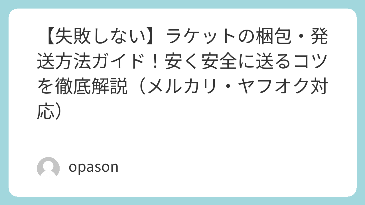 これまで何本ものラケットを発送してきた筆者の経験をもとに、読んだその場で実践できる「安全かつ最安」の梱包・発送術を、リアルな体験談を交えて余すことなくお伝えします。