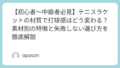通販の在庫処分品には、数年前からガットが張られたままのものがあります。ナイロンガットは時間が経てば経つほど劣化し、テンションもゆるゆるです。購入時は「ガットなし」を選ぶか、届いたらすぐに張り替えることを前提に予算を組みましょう。新しいテニスガットを張るだけで、ラケットのポテンシャルは一気に蘇ります。