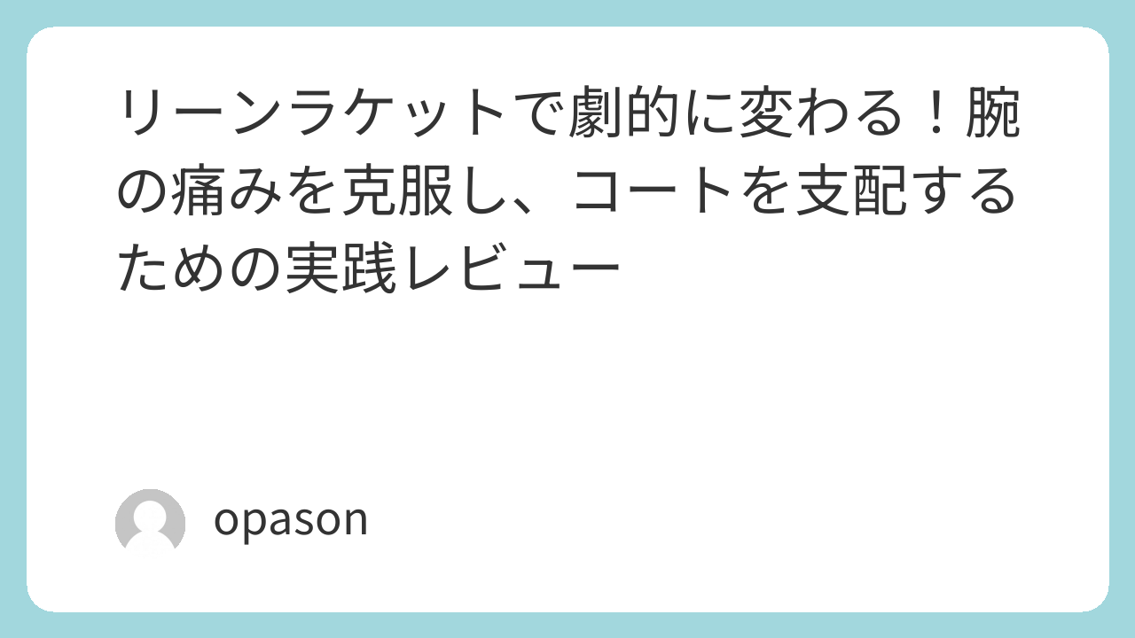 私がリーンラケットに切り替えて最も感動したのは、翌日のコンディションです。以前は週末の練習後、月曜日には右腕が鉛のように重く、仕事中もキーボードを叩くのが辛いほどでした。