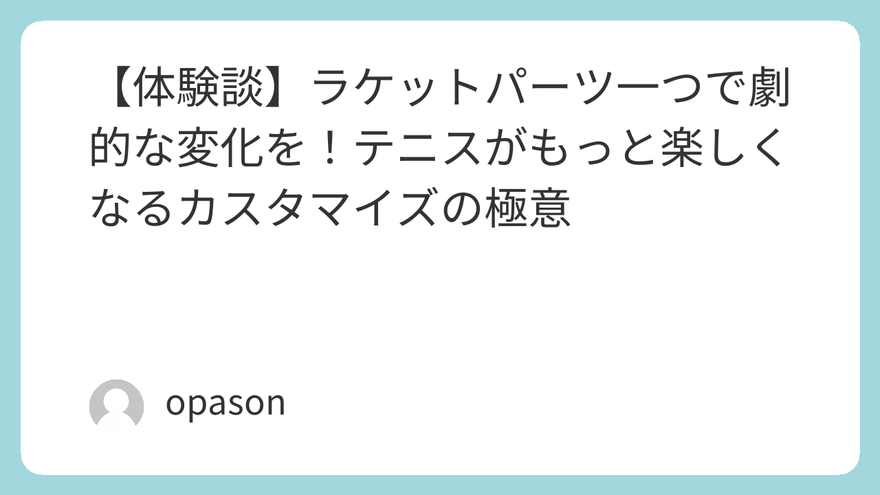 まずはグリップテープのような小さなパーツからで構いません。あなたの感覚に寄り添う「最高の1本」を、パーツ選びを通じて育ててみてください。その先には、今まで以上にテニスが楽しくなる瞬間が待っています。