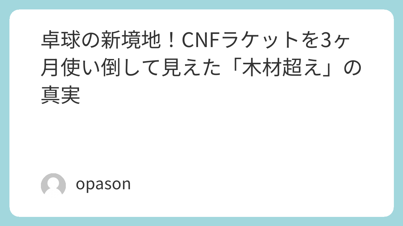 CNFラケットは、単にスペックが高いだけの道具ではありません。プレイヤーの指先の感覚を殺さず、かつ現代卓球に必要なパワーを上乗せしてくれる「感性の拡張機」のような存在です。