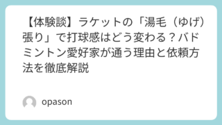 未分類 【体験談】ラケットの「湯毛(ゆげ)張り」で打球感はどう変わる?バドミントン愛好家が通う理由と依頼方法を徹底解説