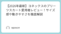 まず驚いたのは、その「装着感のなさ」です。プロテクター特有のゴワゴワした感触がほとんどなく、ウェアの下にヨネックス ロングヒップパッドを履いていても、シルエットが不自然に膨らむことはありませんでした。