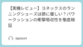 実際にヨネックス ランニングシューズを履いて一歩踏み出した瞬間、まず驚くのはその「ムニュッ」とした独特の接地感です。ナイキの厚底のようなポンポンと弾む感触とは違い、着地の衝撃を素材が優しく包み込み、そのままスムーズに前方への推進力に変えてくれるような、非常にマイルドな乗り心地。特に膝の皿の下あたりにくる「ツンとした痛み」に悩まされていた筆者にとって、このクッション性は救世主のように感じられました。