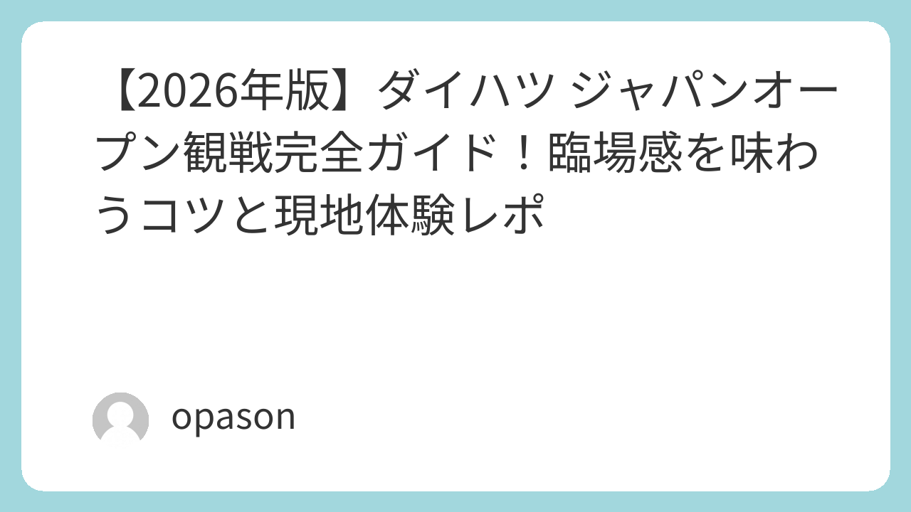 【2026年版】ダイハツ ジャパンオープン観戦完全ガイド!臨場感を味わうコツと現地体験レポ