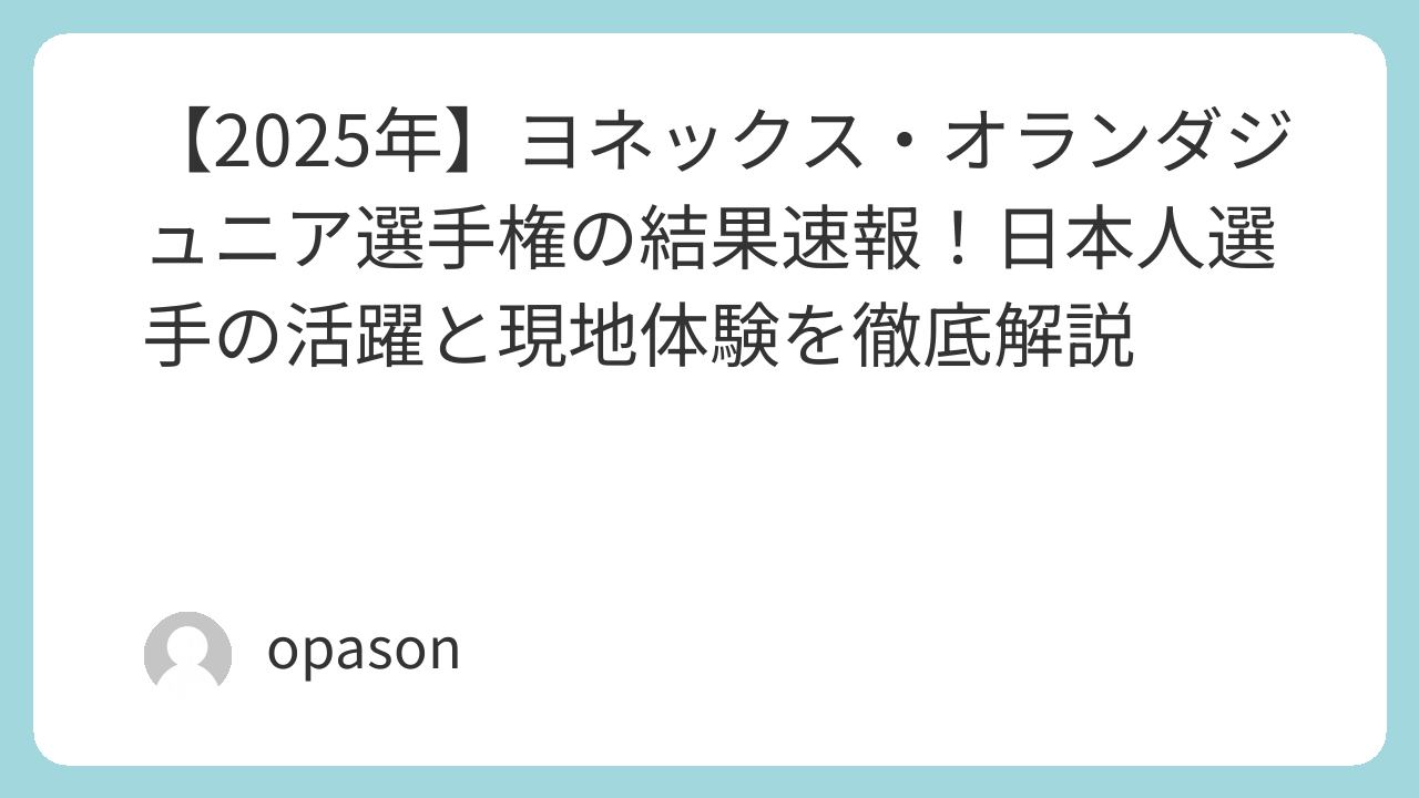 2025年2月26日から3月2日にかけて、オランダのハールレムにあるDEGIROホールで「ヨネックス・オランダジュニア(Yonex Dutch Junior International 2025)」が開催されました。ジュニア世代(U19)の最高峰であるBWFジュニアインターナショナル・グランプリに位置付けられるこの大会は、まさに未来のオリンピアンたちの登竜門です。