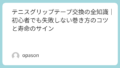 A: 見た目が汚れていなくても、表面の質感が変わったら交換時です。目安として、週1〜2回のプレーなら1ヶ月、週3回以上なら2週間が限界です。私は「試合の前日」には必ず新品に巻き替えるようにしています。メンタル的にも「滑らない」という安心感は大きな武器になります。