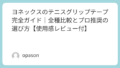 幸い怪我はありませんでしたが、それ以来、握力が無意識に強まり、結果としてテニス肘を患うことになりました。この経験から学んだのは、**「グリップテープは消耗品ではなく、ショットの精度を司る精密パーツである」**ということです。新品に巻き替えた瞬間の、あの吸い付くような安心感。余計な力を入れずにスイングできる感覚こそが、上達への近道だと確信しています。
