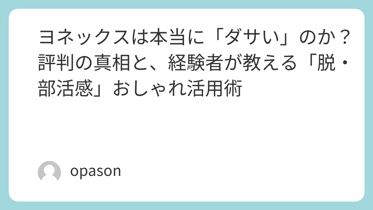 今回は、なぜヨネックスがそう言われてしまうのか、そして実際はどうなのか、実体験を交えながら「大人のヨネックス着こなし術」を深掘りします。