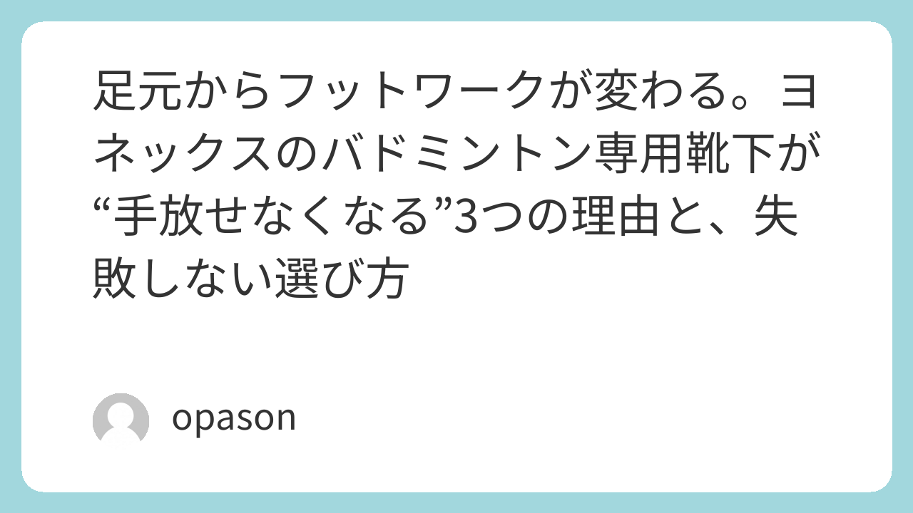 バドミントンを始めたばかりの頃、私はどこにでも売っている普通のスポーツソックスを履いてコートに立っていました。「靴下なんてどれも同じだろう」と高を括っていたのです。しかし、激しいフットワークを繰り返すうちに、親指の付け根に大きなマメができ、シューズの中で足が遊んでしまう感覚に悩まされるようになりました。