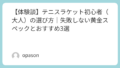「フェデラーが好きだから」と315g以上のモデルを購入したAさん。最初の15分は快調でしたが、1時間を過ぎる頃にはラケットが鉛のように重くなり、スイングが崩れてしまいました。結局、フォームが身につく前に腕を痛めて買い換える羽目に。男性なら300g前後が目安ですが、初心者がいきなりツアーモデルに手を出すのは禁物です。