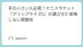 結論として、サイズ選びで迷ったときは**「ワンサイズ下げて、オーバーグリップで微調整する」**のが最も安全な選択です。細い分には足せますが、太いものを削ることはできないからです。