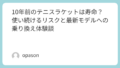 もし100インチにして「飛びすぎる」と感じたら、道具を変える前にガットを見直しましょう。ポリエステルガットを少し高めのテンション(48〜52ポンド程度)で張ることで、100インチの寛容さを残したまま、コントロール性能を格上げできます。
