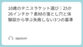 - 飛びすぎてバックアウトする最初は100インチと同じ感覚で振ると、ボールがどこまでも飛んでいきます。コツは「叩く」のではなく、ボールを面に長く乗せて「運ぶ」イメージでスイングすること。これだけで、コート内に収まる確率がぐんと上がります。