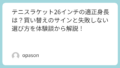 ジュニア選手の成長に伴い、必ず直面するのが「いつ大人用の27インチラケットに切り替えるか?」という問題です。26インチのラケットが少し小さく見え始めると、周りの子が大人用を使い出すのも相まって、焦る気持ちも分かります。