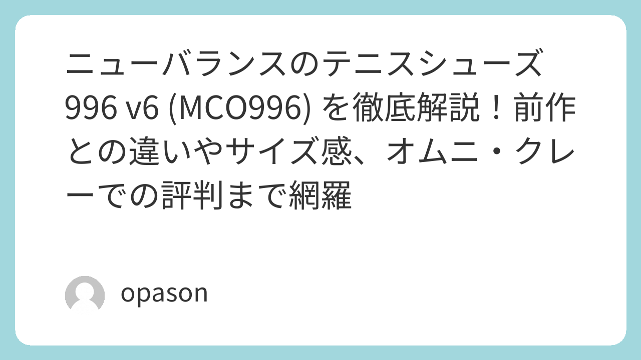 ニューバランスのテニスシューズ 996 v6 (MCO996) を徹底解説!前作との違いやサイズ感、オムニ・クレーでの評判まで網羅