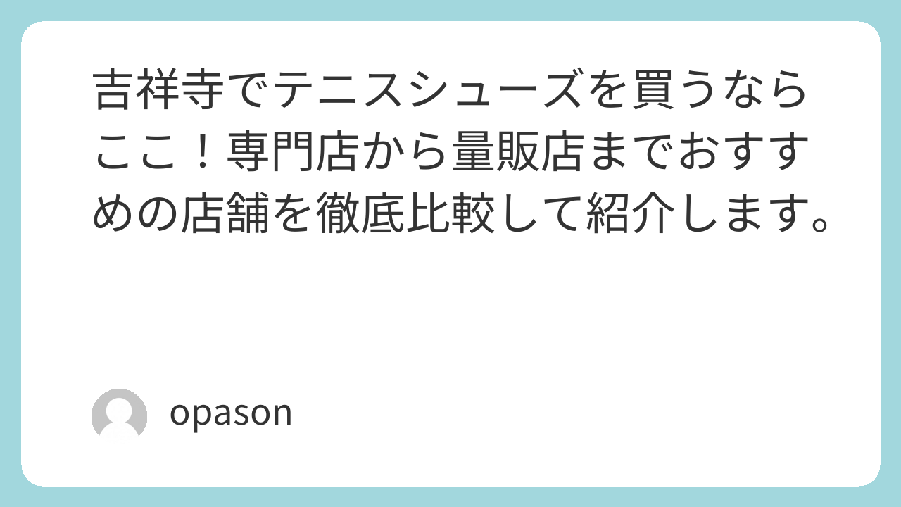 テニスを愛する皆さん、こんにちは。いざ「新しいテニスシューズを新調しよう!」と思っても、ネットのレビューだけではサイズ感やコートとの相性がわからず、結局どれが良いのか迷ってしまうことってありますよね。特に吉祥寺エリアは、こだわりの専門店から大型店まで揃っているからこそ、どこに行けば正解なのか迷いがちです。