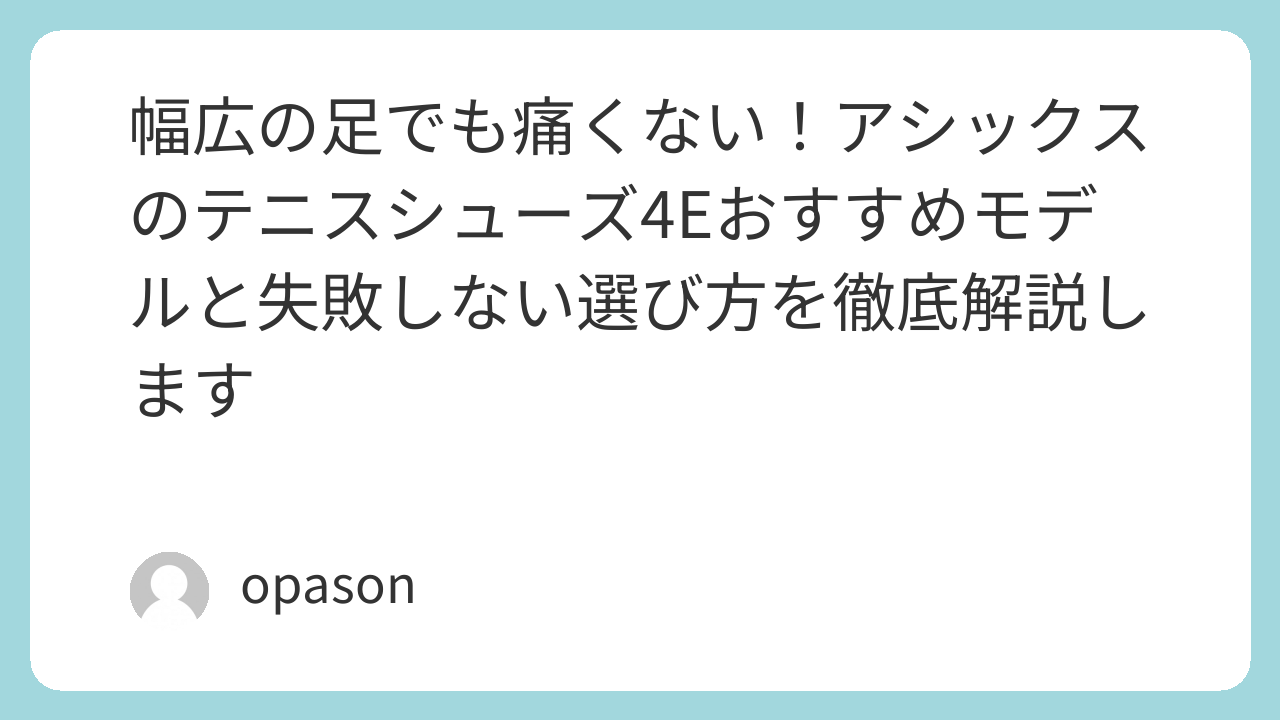 今回は、足の幅で悩む全てのプレーヤーに向けて、アシックスが誇る最強の4Eテニスシューズの世界を、私の実体験を交えてご紹介します。