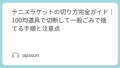 テニスシューズには「オムニ・クレー用(砂入り人工芝向け)」がありますが、これはおすすめしません。底の突起(ドット)が硬いアスファルトの上では滑りやすく、何より削れやすいからです。街履きには、フラットな面が多い「オールコート用」や、最初からライフスタイル向けに展開されている「コート系モデル」を選びましょう。