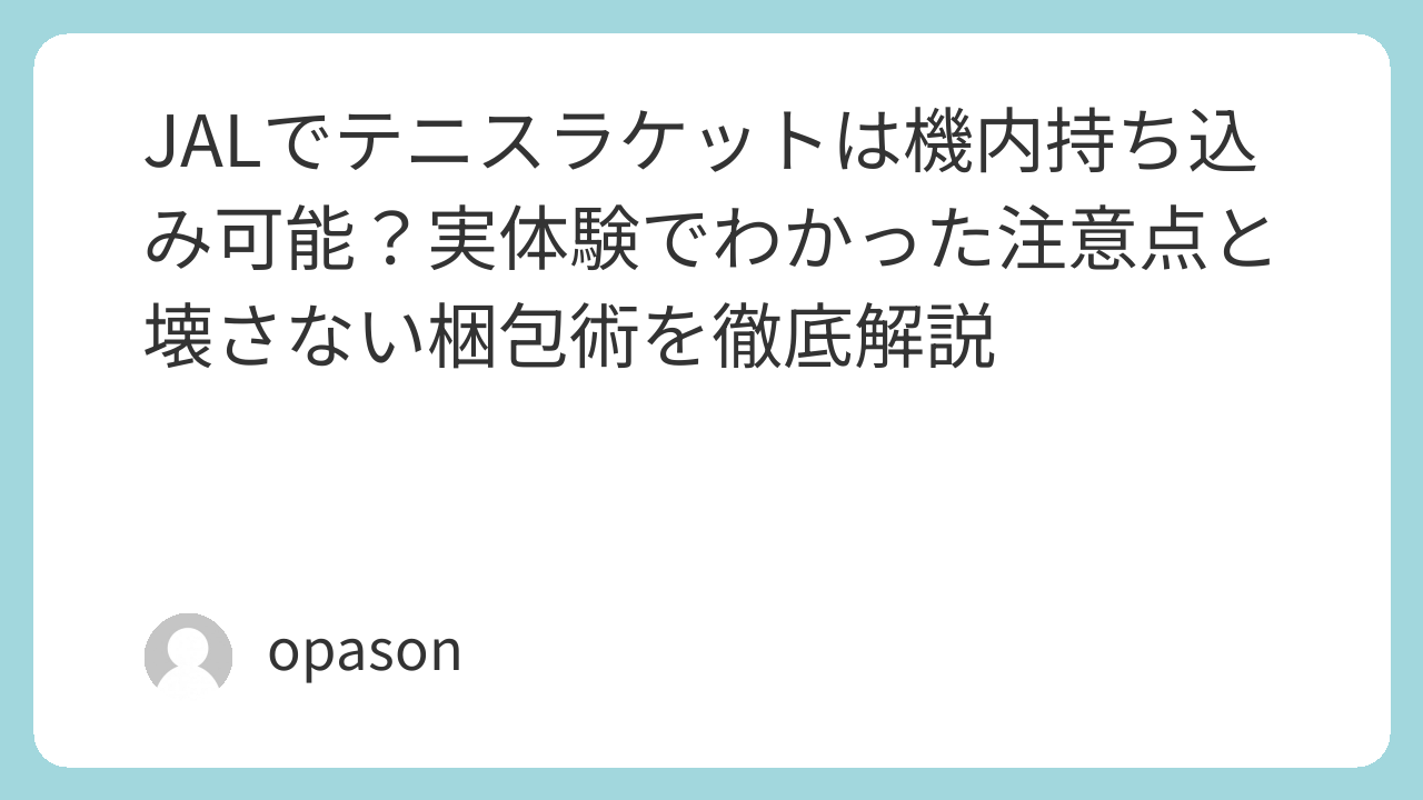 今回は、JALを利用して何度も遠征を繰り返してきた筆者の実体験を交え、テニスラケットを安全に、そしてスマートに運ぶための秘策を公開します。