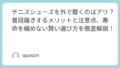 テニスシューズの代わりを探すときは、**「自分の足を守れるか」「コートを傷つけないか」**の2点を最優先に考えてください。