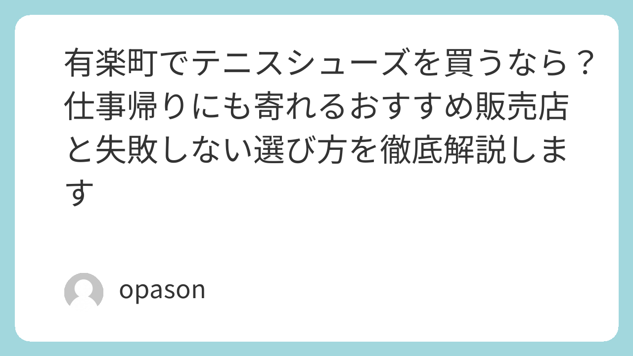有楽町・銀座エリアは、ただのショッピング街ではありません。最高の一足と出会い、テニスの質を一段階引き上げてくれる場所です。次の練習の前、少しだけ早くオフィスを出て、有楽町の街を歩いてみませんか?