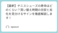 ソールの溝がツルツルになってきたら寿命です。週1〜2回のプレーなら1年前後が目安ですが、クッション性は外見以上に劣化が進みます。「最近、足の裏が疲れやすくなったな」と感じたら、テニスシューズの新調を検討してみてください。