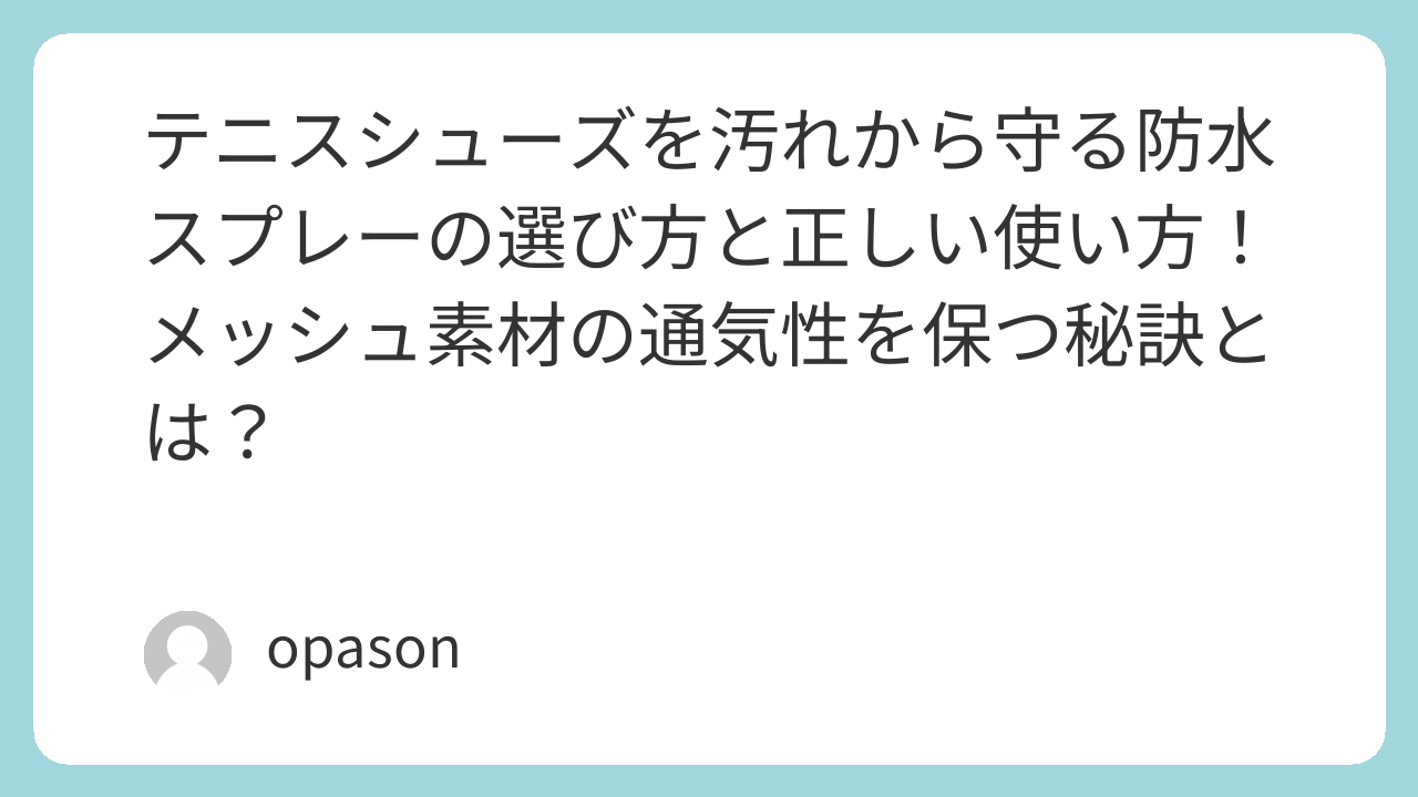 テニスは足元が非常に蒸れるスポーツです。安易に「強力そうだから」と油性やシリコン系のスプレーを選んでしまうと、膜が繊維を完全に塞いでしまい、靴の中がサウナ状態になってしまいます。