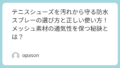 雨のプレー以上に重要なのが、その後のケアです。濡れたまま放置すると、シューズの接着剤が剥がれる「加水分解」を早め、最悪の臭いを引き起こします。