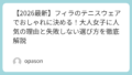 フィラのウェアは、着ているだけで「今日もテニスを頑張ろう」と思わせてくれる魔法のようなアイテムです。お気に入りの1着に袖を通せば、バックハンドのミスすら少しだけ前向きに捉えられるかもしれません。