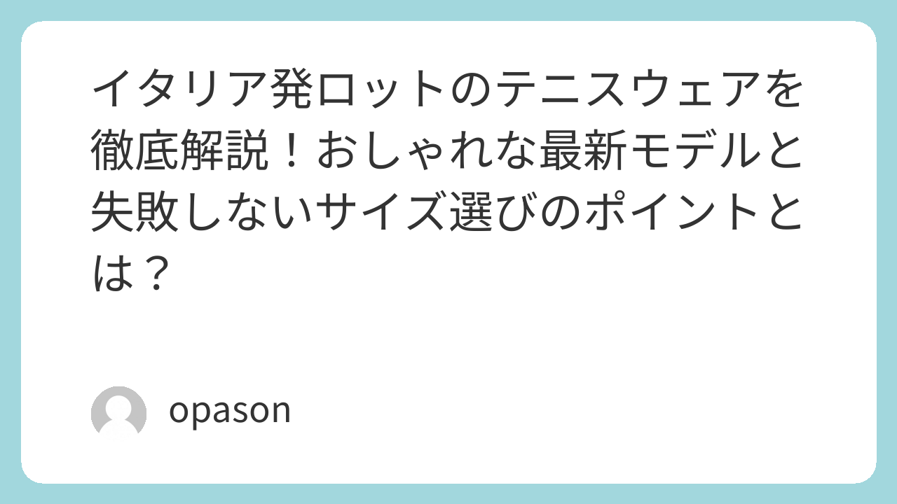 イタリア発ロットのテニスウェアを徹底解説!おしゃれな最新モデルと失敗しないサイズ選びのポイントとは?