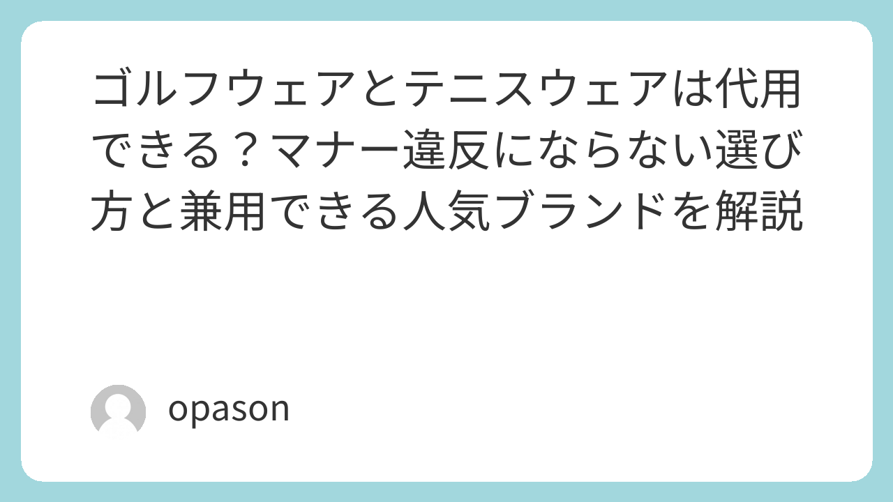 私自身、週末はテニスコートを駆け回り、月に一度はゴルフ場でラウンドする二刀流プレーヤーですが、実際に多くのアイテムを使い回しています。しかし、そこには絶対に外してはいけない「マナー」と「機能性」の境界線が存在します。