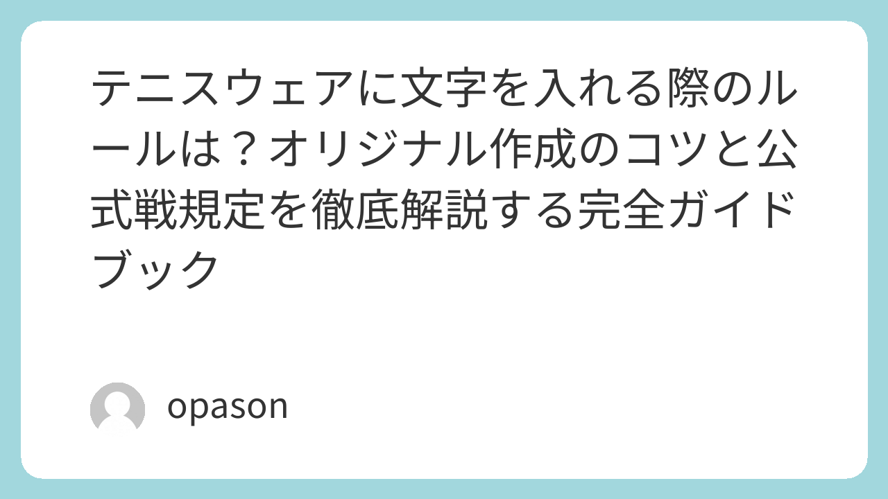 「自分たちのチーム名が入ったウェアで試合に出たい!」そう思って作成したウェアが、当日審判に「ロゴが大きすぎるから着替えなさい」と言われたら……。実は、テニスの公式戦にはウェアの「文字」や「ロゴ」に関する非常に細かなルールが存在します。