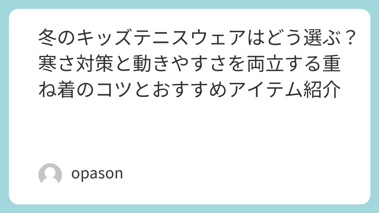 冬のジュニアテニス、親御さんが一番頭を悩ませるのがウェアの調整ですよね。半袖では風邪を引くし、厚着をさせすぎると「動きにくい!」と子供がへそを曲げてしまう。私自身、子供をコートへ送り出す際に何度も失敗し、ようやくたどり着いた「冬の正解レイヤリング」について、実体験を交えてお伝えします。