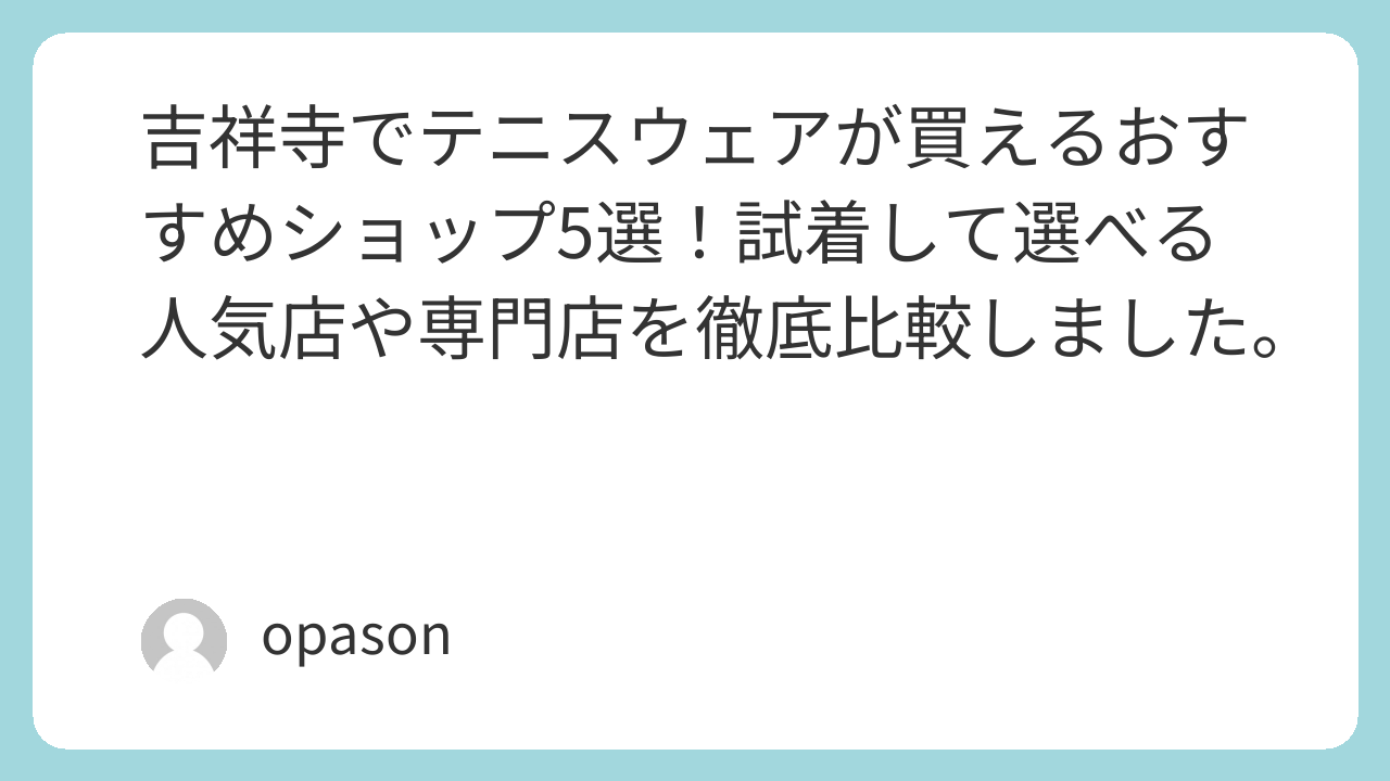特に吉祥寺は、井の頭公園でのテニス帰りにふらっと立ち寄れる距離に、質の高いショップが密集している「テニスウェア選びの聖地」なんです。今回は、実際に私が吉祥寺の街を歩き回って見つけた、本当におすすめできるショップを目的別に詳しくご紹介します。